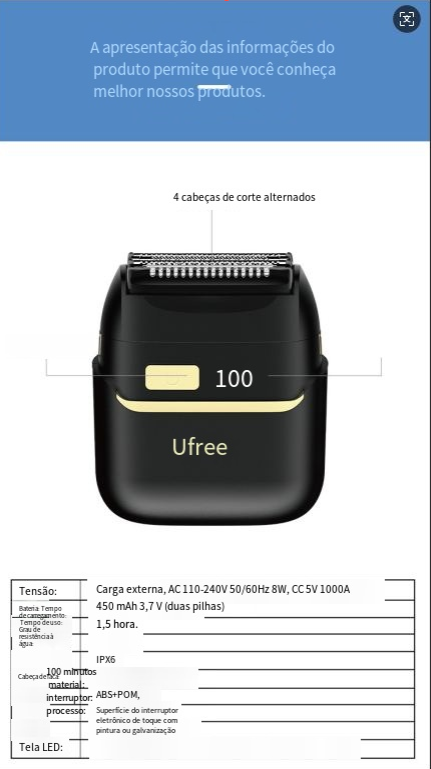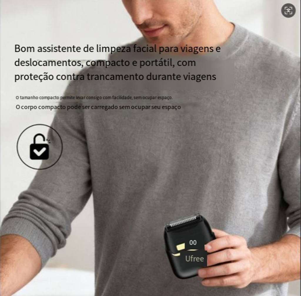 Ufree reciprocar barbeador, barbeador elétrico para homens, mini barbeador de lavagem portátil